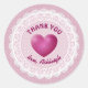 Adesivo Redondo Obrigado Chá de fraldas Coração Rosa e Lace A04