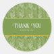 Obrigado Chevron Herringbone Pattern Forest Green Color Personalizado Classic Round Sticker. Padrão elegante, na moda e sofisticado de cor d'água desenhado à mão (chevron) em cor verde-da-floresta. Envie obrigados aos convidados por fazerem parte do seu evento com este obrigado personalizável que você escolhe! Ele pode combinar facilmente qualquer produto, embalagem, cartões de saudação, livros de recortes, presentes e envelopes.