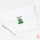 Engraçado cobra de desenho verde. Ele tem olhos ovais grandes com sobrancelhas levantadas. Um sorriso viciado com a língua a sair. Seu corpo longo e coberto de óleo tem um punhal na ponta da cauda. Por cima da cobra em letras negras estão as palavras obrigado.
