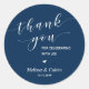 Obrigado por comemorar conosco. É um adesivo perfeito para ser usado em seu casamento ou outra celebração, por exemplo, Festa de aniversário, comemoração de aniversário, Chá de fraldas, ensaio de casamento, presentes para convidados, adesivos de favor e outros. Fonte azul marinho.