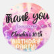 Adesivo Redondo Obrigado de aniversário da Tiedye garota, seu auto