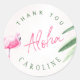 Adesivo Redondo Obrigado de aniversário Tropical rosa flamingo Alo