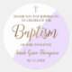 Adesivo Redondo Obrigado de batismo de menina roxa personalizada