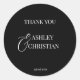 Adesivo Redondo Obrigado de casamento elegante, preto e branco voc