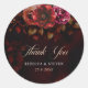 Tchic vermelho escuro e obrigado floral preto de casamento. Expresse sua gratidão em estilo com este elegante obrigado redondo clássico que você cola, apresentando um romântico design floral vermelho e preto. Adorado com rosas vermelhas profundas, flores ricas de burlões e folhagem escura, este adesivo expele sofisticação e encanto gótico. A tipografia refinada, misturando uma escrita graciosa com fontes serif clássicas, adiciona um eterno e um toque sincero. Perfeito por selar cartões de agradecimento, caixas de favor ou sacos de presentes, este adesivo de na moda complementa lindamente um tema de casamento vintage, gótico ou luxuoso enquanto adiciona um detalhe de acabamento personalizado e elegante.