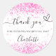 Adesivo Redondo Obrigado de confete branco rosa-quente