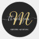 Obrigado de monograma de script preto moderno, seu adesivo redondo clássico