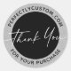Obrigado de negócios elegante para você para seus adesivos de compra com o texto "obrigado você" em uma fonte branca, manuscrita, sobre um círculo preto, com papel de cinza impresso e borda. Altere as fontes, mova e redimensione o logotipo e outros elementos com a ferramenta design.