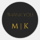 Adesivo Redondo Obrigado Dourado Casamento de Monogramas Pretos Am
