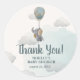 Adesivo Redondo Obrigado! Elefante-bebê-cinza no balão de ar quent