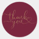 Adesivo de agradecimento em letra cursiva de coração em borgonha e dourado, perfeito para todas as ocasiões. Criado por Thisisnotme©