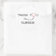 Enfermeiras trabalham duro para te curar. Mostre-lhes o seu apreço. Este adesivo diz "Obrigado enfermeiras" e tem um estetoscópio cardíaco no lugar do O no seu obrigado. A palavra Enfermeiros é personalizável e pode ser mudada para Médico ou outro médico assistente.