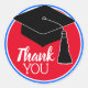 Use estes adesivos "Obrigado Escola Cores Vermelho, Branco e Azul" como selador de envelopes ou favor de festa. Ele apresenta um boné formando com 'Obrigado' escrito em branco contra um fundo vermelho. Obrigado seus hóspedes com esses adesivos escolares.