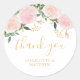 Adesivo Redondo Obrigado Favor Floral Rosa Dourado