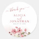 Elegante simples primavera de verão rústico floral botânico rosa pincelado pincelado aquarela flores obrigado seu adesivo de casamento modelo com um roteiro de caligrafia. +++++++++++++++ Fácil de personalizar com o seu texto, nomes e data! ++++++++++ Adequado para a região russa exterior do país bócio em casamentos boêmicos florescentes.