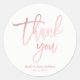 Adesivo Redondo OBRIGADO Folha Dourada Rosa Moderno Script Casamen