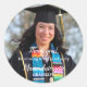 Obrigado Formando Photo Modern Classic Round Sticker. Este modelo de fotografia moderno para a festa de formatura é perfeito para dizer obrigado aos seus hóspedes e embrulhar os presentes do seu partido com um toque único
