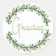 Mostre sua gratidão com este adesivo chic redondo disponível em dois tamanhos. Apresenta uma coroa de folhas em tons de verde sobre um fundo branco. No centro está a tipografia escrita à mão com "Gracias", obrigado-te em espanhol.