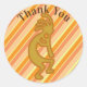 Este obrigado que você escolhe oferece uma maneira barata de expressar sua apreciação. O adesivo apresenta um Kokopelli dourado com flauta. Esse musical Kokopelli é uma das imagens nativas americanas icônicas do deserto a sudoeste dos Estados Unidos. Este ouro Kokopelli destaca-se contra um fundo listrado de tons de terra laranja. Personalize as palavras obrigado, se desejar.