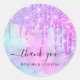Precisa de uma maneira impressionante e atraente de dizer "obrigado" aos seus convidados de casamento ou participantes da festa de Sweet 16? Não procure mais do que o Adesivo Redondo Clássico Brilho Holográfico Drip Thank You Bridal Sweet16th. Este adesivo lindo e único adicionará um toque de glamour e sofisticação a qualquer evento.