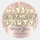 Adesivo Redondo Obrigado Nome Festa de 14 Anos Glitter Gotas Rosa