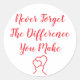 Adesivo Redondo Obrigado - Nunca Esqueça A Diferença Que Faz