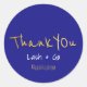 Adesivo Redondo Obrigado Ouro Script Blue Marinho Event Favor