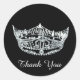 Obrigado, adesivo redondo mostrado a preto com uma impressão de foto de uma coroa de rainhas do concurso. Personalize este item ou comprar como está.