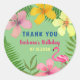 Diga obrigado com estilo tropical com este adesivo divertido e colorido para festa de aniversário! Com um flamingo rosa, flores em aquarela, folhas verdes exuberantes e tipografia lúdica, é perfeito para selar envelopes, sacolas de lembrancinhas ou caixas de presente. Personalize o nome e a data para dar um toque vibrante aos aniversários de verão, festas de piscina ou celebrações com tema luau. Ideal para crianças, adolescentes ou amantes de flamingos!