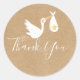 Com uma adorável cegonha carregando uma entrega especial de estrela dourada, com um obrigado em bela caligrafia, em um fundo kraft rústico neutro em termos de gênero. Este adesivo de chuveiro de bebê é perfeito para adesivos de favor e selos de envelope. Criado por Thisisnotme©