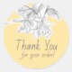 Um obrigado para o adesivo do seu pedido com um som de uma árvore ylang ylang com flores no cheio florado com lápis sobre fundo amarelo quente e texto de cinza. Você pode editar o texto para ajustado das suas necessidades.