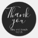 Obrigado Black and White Wedding Favor Classic Round Sticker Este obrigado que você cola complementa qualquer esquema de cor.