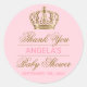 Adesivo Redondo Obrigado, Princesa Rosa, Dourada Chá de fraldas