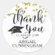Confete dourado e roteiro manuscrito OBRIGADO com o nome do graduado e ano de graduação em preto. Use como adesivos de favor de festa de formatura ou selos de agradecimento em envelopes de papelaria. Entre em contato com o designer se desejar que este design seja modificado ou esteja em outro produto.