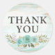 Adesivo Redondo Obrigado Rustic Wood Turquesa Flores Rosas