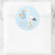 Procurando etiquetas para decorar suas favoritos para festas para a festa do chá de fraldas? Que tal esta design que tem um desenho de um carregando de cegonha um pacote de bolinhas com um bebê bonito embrulhado dentro. O bebê tem um pacificador azul na boca. Obrigado seus convidados por vir!