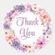 Adesivo Redondo obrigado você aquarela flores roxas elegantes