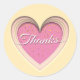 Coração cor-de-rosa ama coração com camadas amarelas claras e cor-de-rosa, poeira dourada e a palavra "Obrigados"