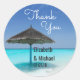 Adesivo Redondo Obrigados Cênicos de Casamento de Praia Tropical