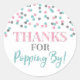 Obrigados para aparecer por adesivo de etiqueta favorita com um padrão de brilho azul-prateado e cor-de-rosa. favores perfeitos de pipoca para casamento ou chá de fraldas.