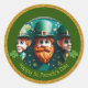 Miniatura Leprechaun em 3D + "Dia de São Patrício Feliz" em um círculo verde. Design no adesivo redondo.