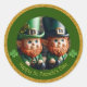 Miniatura Leprechaun em 3D + "Dia de São Patrício Feliz" em um círculo verde. Design no adesivo redondo.