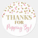 Obrigados para aparecer por adesivo de etiqueta favorita com um confete de padrão brilhante dourado e rosa. favores perfeitos de pipoca para casamento ou chá de fraldas.