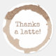 Um obrigado de negócios engraçado que você design com o trocadilho "Obrigado um latte! (Obrigado muito" em texto escrito marrom enquadrado por um círculo de mancha de café.