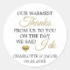 Belo obrigado de escrita de caligrafia, casamento de presentes para adereços a seus presentes favoritos. Coração de folha de ouro com fundo branco. "obrigados mais quentes de nós para você no dia em que dissemos que sim". Perfeito para qualquer festa de primavera, primavera ou de verão. Etiquetas de modelo editáveis.