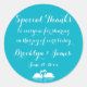 Obrigados especiais personalizados azuis (azul-scuba) e adesivos redondos brancos com cisnes brancas e texto personalizável