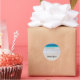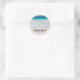 Água tropical, azul-oceânica e imagem de praia lisa e arenosa em um adesivo redondo com texto personalizado que é "obrigado você".