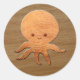 Adesivo Redondo Octopus De Cartoon Bonito Com Impressão De Madeira