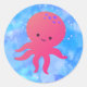 Adesivo Redondo Octopus De Cartoon Em Azul-Oceânico