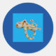 Octopus de solteiro no adesivo redondo clássico de fundo azul